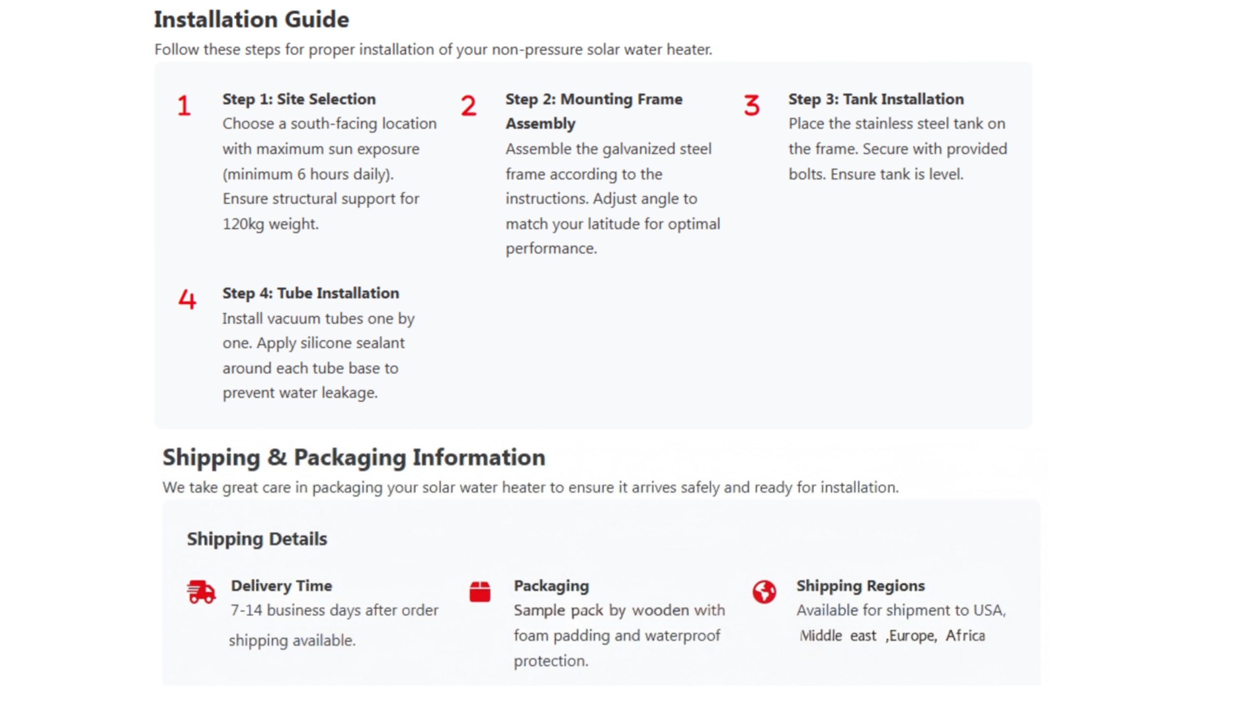 Boggistar high quality SS 316/SS 201 stainsteel solar water heater 100L/150L/200L/240L/300L/360L